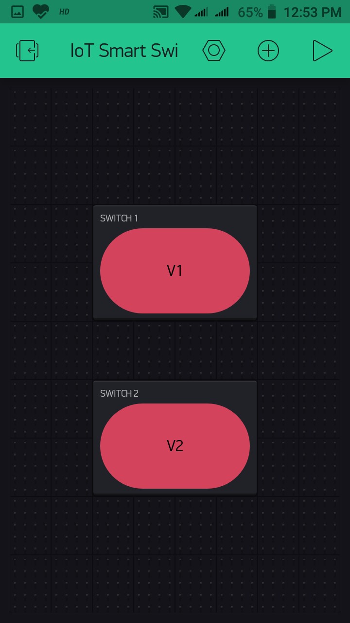 After configuration you can press the triangular button to connect your blynk project with your hardware.