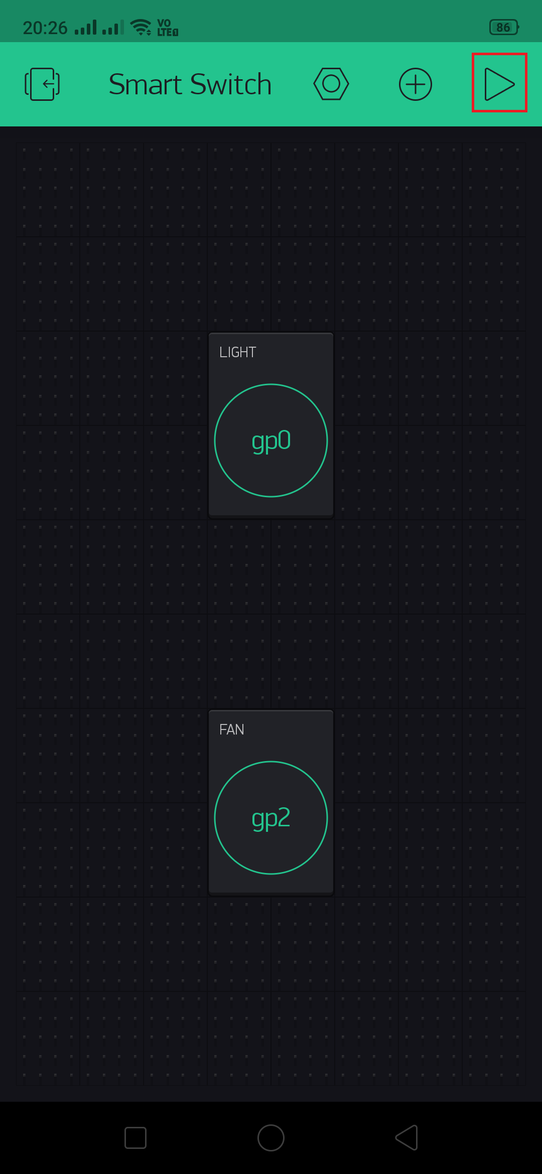 Once configuration is done go back. Tap on this Play button highlighted.