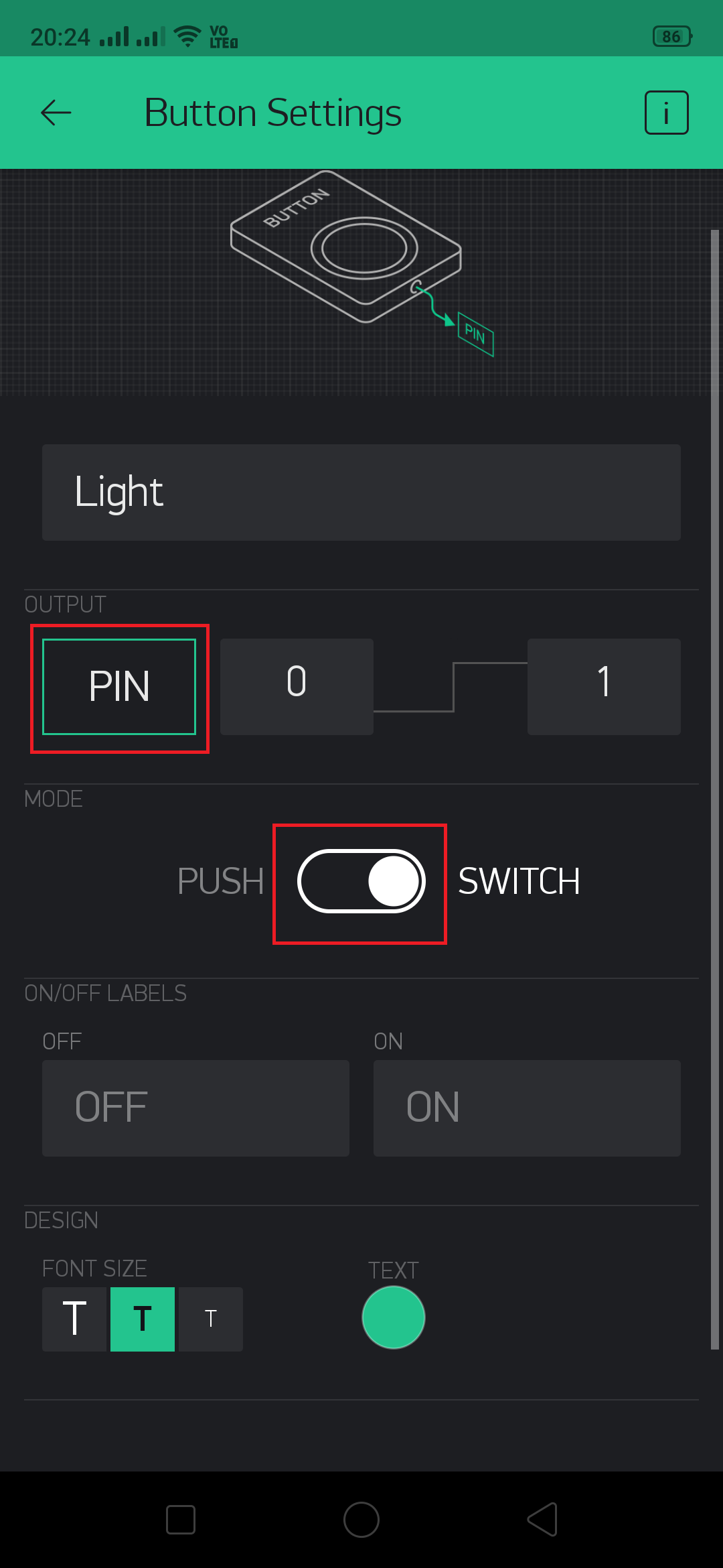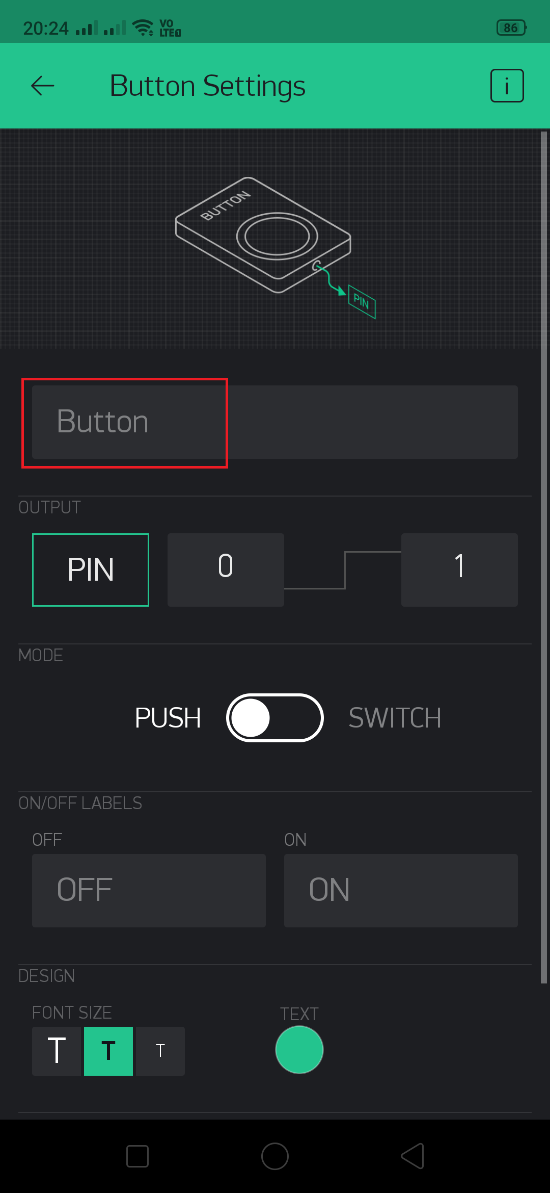 Enter the name of the button. Since we will be using two Buttons, will name it Light and Fan. You can name anything you want. We have given Light.