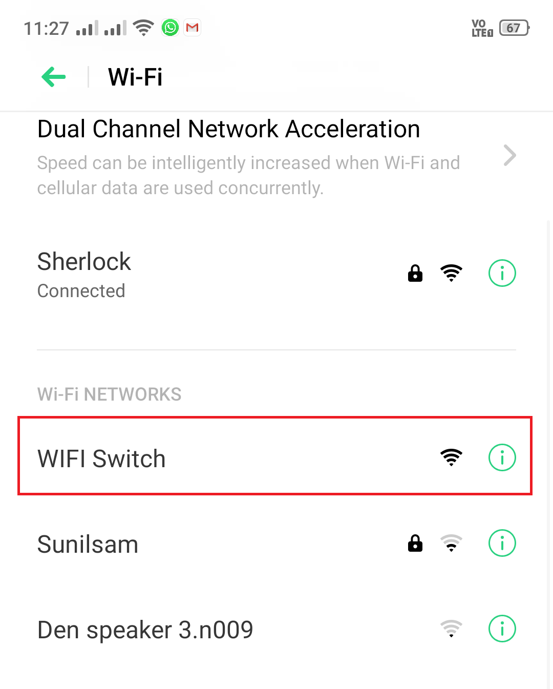 Initially the device where WiFi manager is uploaded will work as a access point. In this case it will show as “WiFi Switch“. Power on you device and go to wifi settings.